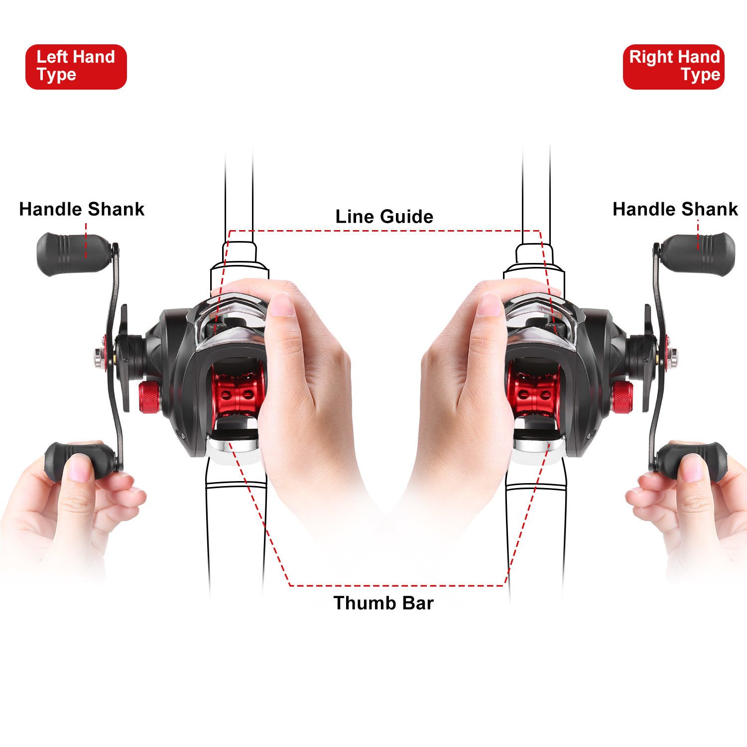 *RELIABLE AND LIGHTWEIGHT EXTERIOR DESIGN*:Featuring a thumb bar to cast the line sensitively; a smooth U-shaped aluminum alloy spool to contain more lines and two recessed plastic handles for a smooth and comfortable rotation. Besides; coming with only .48lbs-weight; it is light enough to reduce hand fatigue when fishing.