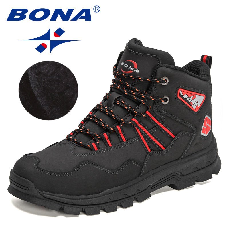 BONA 2022 New Designers Action Leather Plush Hiking Boots High Top Walking Shoes Men Work Mountain Sport Ankle Boots Mansculino
