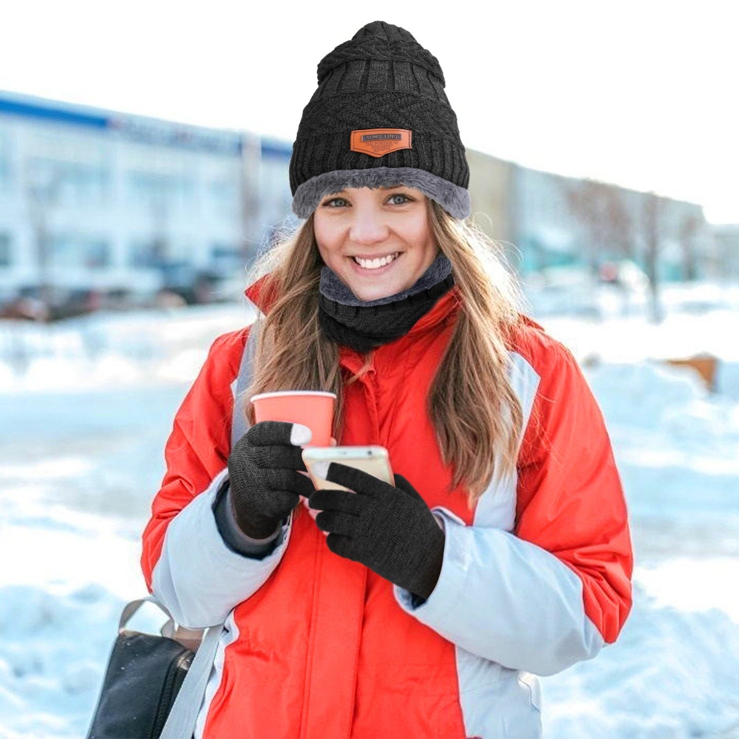 *Soft & Skin-Friendly*:Made from soft acrylic knitted fiber with thick polyester fleece lining,our Warm Beanie Hat Scarf Gloves Set is comfortable,skin-friendly,highly elastic,which can keep you warm,allowing you to have fun outside freely even in chill winter. Besides,the warm set is machine washable for easy cleaning.